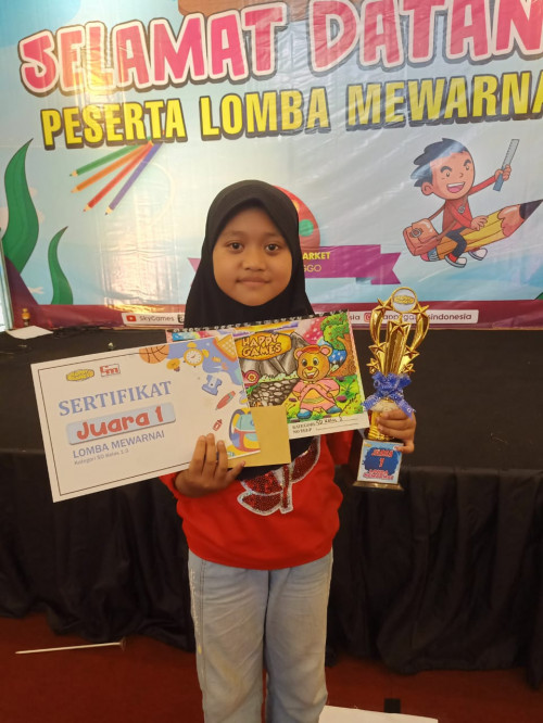 Dalam lomba kreativitas mewarnai, Adara Anindya Ramadhani (Kelas 2B) berhasil meraih Juara I mewarnai. Dia mendapat piala, sertifikat dan voucher senilai Rp 250 ribu.