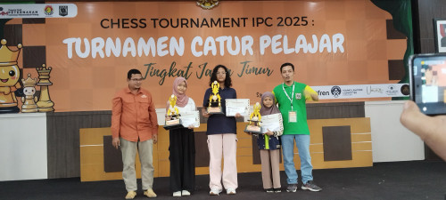 Humas, Kota Probolinggo – Insan Peduli Catur (IPC) Kabupaten Malang bekerja sama dengan Universitas Muhammadiyah Malang (UMM) Prodi Peternakan sukses menggelar Tournament Catur Pelajar Tingkat Jawa Timur di Gedung GKB IV UMM. Sebanyak 250 pecatur muda berbakat dari berbagai daerah di Jawa Timur berpartisipasi dalam turnamen yang bertajuk CHESS TOURNAMENT IPC 2025, pada Minggu 27/04/25. Dalam even tersebut peserta didik SD Negeri Sukabumi 2 Kota Probobolinggo, Almira Raissa Pratita (Kelas 4B), sabet tropi Juara 2 kategori SD/MI.