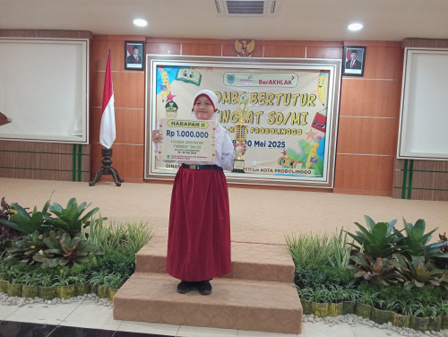 Kota Probolinggo, (Humas) – Prestasi membanggakan kembali ditorehkan oleh Aisyah Rizky Amalia, siswi dari SD Negeri Sukabumi 2 Kota Probolinggo kelas V C, berhasil meraih Juara Harapan II dalam ajang Lomba Bertutur Tingkat SD/MI Sederajat Kota Probolinggo Tahun 2025. Kompetisi ini merupakan bagian dari upaya pemerintah daerah dalam menumbuhkan minat baca dan kecintaan terhadap budaya sejak usia dini.