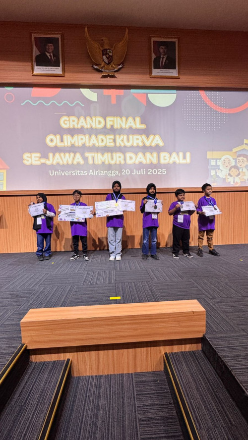 Surabaya, (Humas) – Prestasi membanggakan kembali ditorehkan oleh murid SD Negeri Sukabumi 2 Kota Probolinggo dalam ajang Olimpiade Matematika, Sains, dan Bahasa Inggris yang diselenggarakan oleh Kurva Nusantara. Kompetisi bergengsi ini diikuti oleh ribuan peserta dari ratusan sekolah tingkat dasar se-Jawa Bali, dimulai dari babak penyisihan yang digelar di beberapa kota besar di seluruh Jawa Bali hingga babak grand final yang berlangsung di Auditorium Candradimuka Universitas Airlangga (Unair), Surabaya, Jawa Timur.