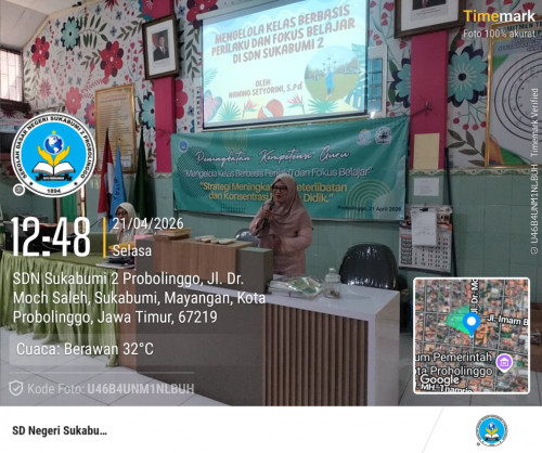 Probolinggo, (Humas) – Memasuki akhir bulan April 2026, seluruh tenaga pendidik di SDN Sukabumi 2 Kota Probolinggo mengikuti Peningkatan Kompetensi Guru, “Mengelola Kelas Berbasis Perilaku dan Fokus Belajar” dengan menggunakan strategi meningkatkan keterlibatan dan konsentrasi peserta didik pada Selasa, 21 April 2026. Kegiatan ini diikuti oleh seluruh jajaran guru, mulai dari ASN PNS, PPPK, hingga tenaga PPPK Paruh Waktu.