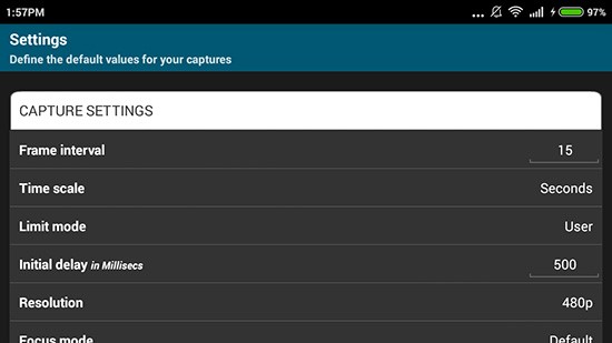 Bagi pengguna android kami sarankan untuk menggunakan Lapse It untuk bisa mengatur seperti jumlah frame, video play back frame rate dan panjang video . Tapi jika anda ingin pengaturan yang lebih cepat, Lapse It bakal mengurangi fitur tersebut. Hanya butuh memilih interval, resolusi dan pengaturan exposure serta white balance aja.