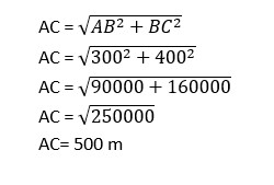 Andi berjalan dari rumahnya menuju sekolah. Dari rumah Andi berjalan sejauh 300 meter ke arah Timur. Kemudian dilanjutkan 400 meter ke arah Utara. Berapakah jarak terdeketat dari Rumah Andi ke Sekolah?
