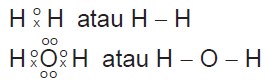 Contoh: H2, H2O (konfigurasi elektron H = 1; O = 2, 6)