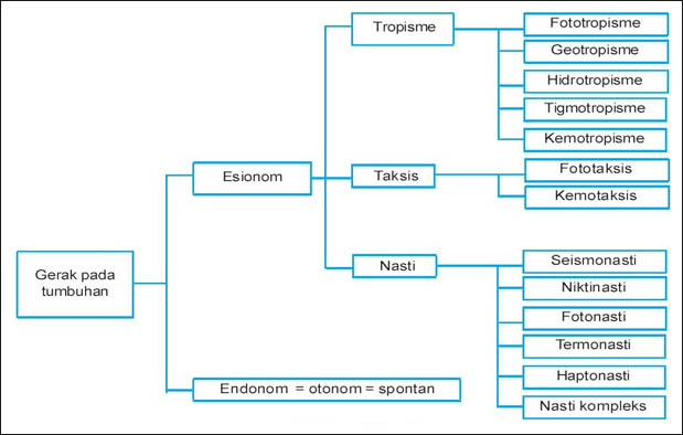 Adapun berdasarkan asal rangsangan, gerak pada tumbuhan dapat dibedakan menjadi 2 yaitu gerak endonom dan gerak esionom.