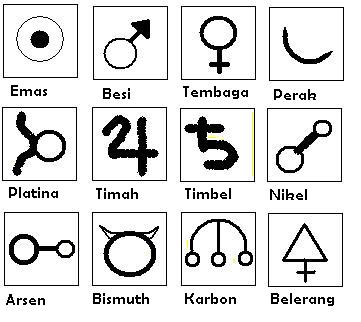 Pada jaman Mesir dan Yunani kuno, para ahli kimia memberikan lambang pada unsur-unsur yang telah dikenal sebagai berikut.