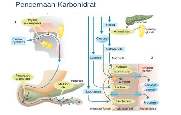 Proses pencernaan karbohidrat di usus halus melalui beberapa organ penting yang masing-masing memiliki peranan yang berbeda. Organ tersebut antara lain:
