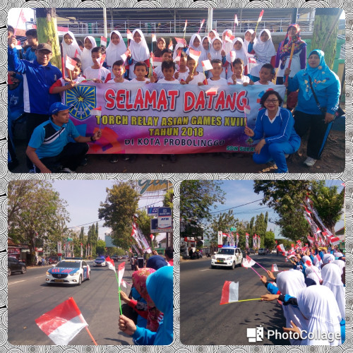 Suasana semarak begitu terasa menyambut kedatangan rombongan api obor Asian Games. Tak terkecuali seluruh komponen SDN Sukabumi 10 Kota Probolinggo mulai dari bapak ibu guru dan para siswa siswi tumpah ruah berada di sepanjang jalan Soekarno Hatta menyambut rombongan kirab api obor sejak pagi hari.