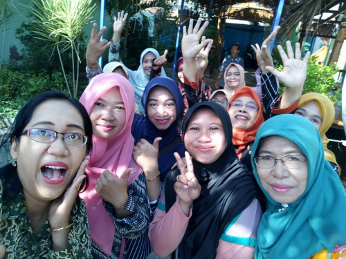 Kompak banget ya, Ibu guru sdn kebonsari kulon 6 nih. Selesai kerjabakti langsung berselfie ria :)
