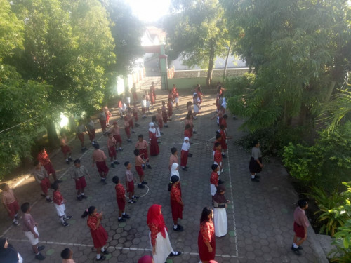 Siswa siswi sdn kebonsarikulon 6 melaksanakan kegiatan rutin senam pagi