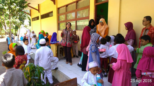 Siswa siswi pun langsung ikut menikmati hidangan sate kambing tersebut. Alhamdulillah kegiatan berjalan dengan lancar.. sebagian daging yang sudah dikemas kemudian dibagikan kepada warga sekitar.