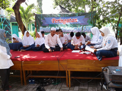 Dalam rangka memperingati Maulid Nabi Muhammad SAW, siswa-siswi SMPN2 sedang ikut meramaikan acara pentas maulid.