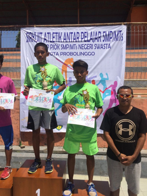 Dalam bidang atletik, Putra kami berhasil menjadi juara untuk lomba Sirkuit Atletik antar pelajar SMP/Mts Negeri Swasta Kota Probolinggo.