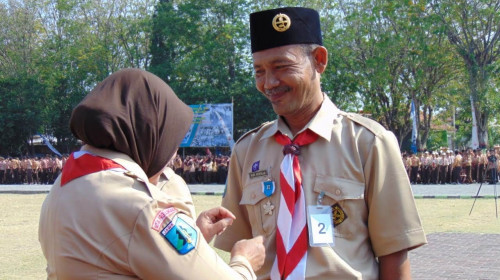 Pemberian penghargaan Lencana Pancawarsa oleh Ibu Walikota kepada bapak Kepala SD Negeri Mangunharjo 6