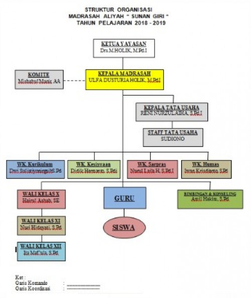 Struktur Organisasi Madrasah Aliyah Sunan Giri Tahun Pelajaran 2018 - 2019