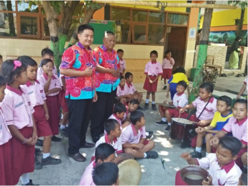 Inilah tim drumb band SDN Sukoharjo 4 yang melakukan latihan rutin bersama guru pendamping.