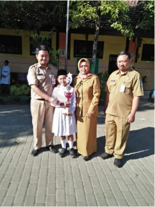 Penyerahan piala kemenangan lomba Speed Climbing Compettion dari siswa ke pada pihak sekolah