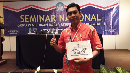 Zacky Al Irfan guru SMPN 4 Kota Probolinggo berhasil meraih penghargaan sebagai Presenter Terbaik pada kegiatan Seminar Nasional Guru Pendidikan Dasar Berprestasi Angkatan II