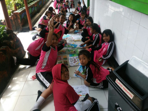 Kegiatan mewarnai yang dilakukan di luar kelas