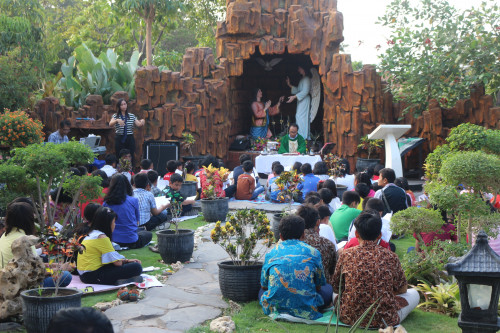 Disana mengikuti jalan salib sebelum misa dimulai dan Oleh kakak seminari jalan salib dikemas apik dengan drama singkat dan musikalisasi