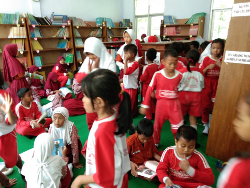 Kegiatan belajar diluar kelas, alias di dalam perpustakaan.
