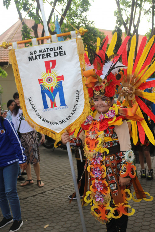 Busana yang dikenakan oleh maskot terbuat dari barang bekas, dibuat dengan kreatif dan inovatif