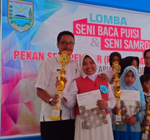 Prestasi non akademik di raih oleh Sekolah. Masih dalam rangka Pekan Seni Pelajar, dalam kategori Baca Puisi. Lomba Kali ini diwakilkan oleh Ananda Nafila, Kelas 4. Wahh terimakasih yah Ananda Nafila,, Sudah berjuang demi mengharumkan nama sekolah..