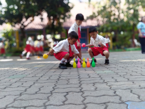 Kegiatan bermain siswa siswi KB Materdei di halaman sekolah