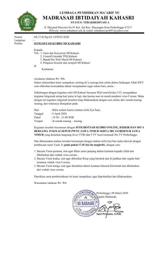 Istigotsah Malam Nisfu Sya'ban MI Kahasri