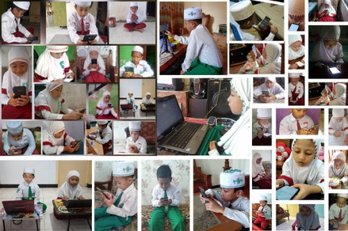 Foto2 siswa/i MI Kahasri Saat PAT Online dari rumah masing-masing