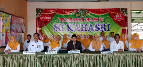Prosesi terakhir yakni pelepasan siswa-siswi kelas VI sekaligus penyerahan dokumen ijazah oleh Kepala Madrasah MI. Kahasri serta pemberian ucapan selamat atas kelulusan para siswa pada tahun pelajaran 2019/2020 yang di sampaikan oleh beberapa pihak. Pesan singkat dari pihak wali murid yakni mengucapkan terima kasih kepada segenap dewan guru karena telah membimbing dan mendidik putra-putrinya selama 6 tahun dengan tulus dan ikhlas. Mereka berharap acara ini bukanlah perpisahan yang sebenarnya, melainkan acara silaturahmi yang akan selalu berjalan dengan baik. MI. Kahasri di bawah naungan LP Ma’arif NU Kota Probolinggo baru kali ini mengadakan acara Pelepasan Kelas VI secara online. Hal ini dikarenakan adanya wabah Covid-19 sekaligus mematuhi anjuran pemerintah untuk tidak membuat kerumunan massa. Di sisi lain, sekolah juga berusaha agar tetap bisa melepas siswa siswinya dengan penuh kesan dan kenangan.