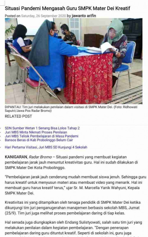 SMP Katolik Mater Dei, melaksanakan pembelajaran dengan Kreatif selama masa Pandemi