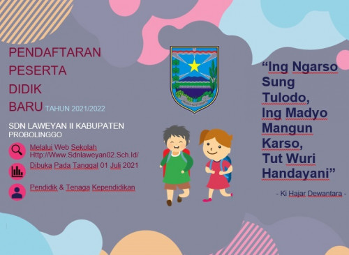 Terkait dengan Penerimaan Peserta Didik Baru (P2DB) SDN Laweyan II Tahun 2021/2022 dibuka pada tanggal 1 Juli 2021. Informasi terkait dengan P2DB akan diinformasikan secara online melalui web sekolah dan menghubungi pendidik dan tenaga kependidikan SDN Laweyan II. Untuk persyaratan pendaftaran bisa melalui pendidik ataupun tenaga kependidikan SDN Laweyan II.