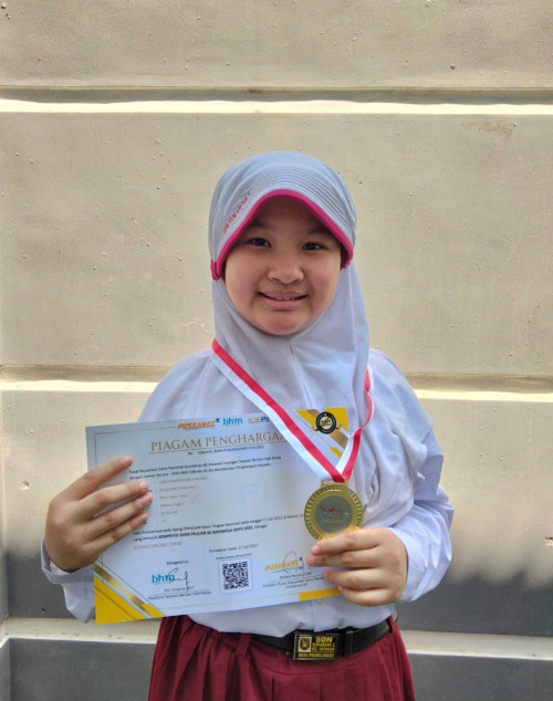 Probolinggo (Humas Sekolah) - Siswi SD Negeri Sukabumi 2 Kota Probolinggo menorehkan prestasi gemilang pada bidang Bahasa Inggris di ajang KSPI atau Kompetisi Sains Pelajar Indonesia pada tingkat Nasional. Untuk bidang Bahasa Inggris Cinta Ramadhani Sugiono meraih medali Emas, sedangkan Fasha Almira Sjahbana dan Fernisa Maulidya Azzahra meraih Perak.