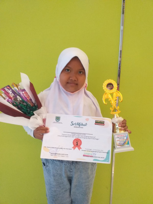 “Alhamdulilah SD Negeri Sukabumi 2 Kota Probolinggo ditetapkan menjadi Juara I Lomba Mendongeng Festival Literasi bersama Sanggar Kampung Dongeng Asyik Probolinggo Tahun 2022,” kata dia saat dihubungi oleh Humasy.