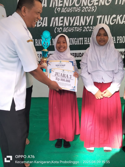 Probolinggo, (Humas) – Baru-baru ini, prestasi membanggakan diraih oleh siswi SD Negeri Sukabumi 2 Kota Probolinggo. Bagaimana tidak? Siswi bernama Rafika Tasya Meilani (Kelas 6A) itu berhasil membawa pulang Juara 3 di lomba mendongeng tingkat SD/MI se-Kota Probolinggo.