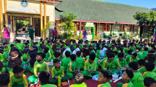 Probolinggo, (Humas) – Mulai awal semester tahun pelajaran baru ini SD Negeri Sukabumi 2 Kota Probolinggo melaksanakan gerakan sarapan pagi bersama di sekolah dengan tajuk MAPAG BERKAH (MAkan PAGi BERsama KAwan sekolaH). Kegiatan ini merupakan salah satu pembiasaan rutin bulanan. Untuk edisi bulan Agustus kali ini bertepatan dengan hari Sabtu (12/08/2023). Seluruh siswa berkumpul di halaman depan SD Negeri Sukabumi 2 Kota Probolinggo. Seluruh siswa dari kelas 1 hingga kelas 6 sarapan bersama dengan membawa bekal makanan dari rumah masing-masing.