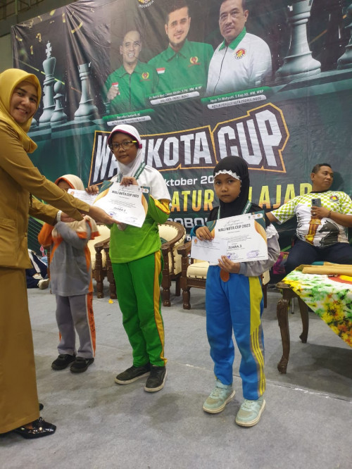 KEDOPOK - Kembali menorehkan prestasi, siswi SD Negeri Sukabumi 2 Kota Probolinggo meraih Juara 2 Lomba Catur Putri Kelompok Usia Pemula 1-3 (Usia 7-9 Tahun) di Ajang Kejuaraan Catur Pelajar Wali Kota Cup Tahun 2023 digelar di GOR Kedopok Mastrip.